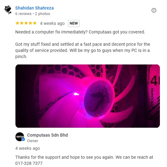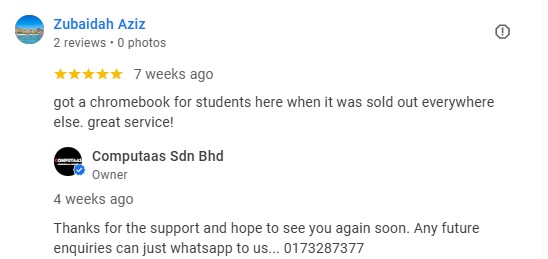 Apart from selling the items, we also provide after market products upgrade and repairing, eg : screen cracked, no power on, and any other software or hardware issues. We also provide the IT On-site services.